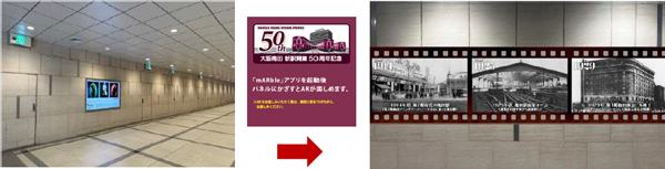 大阪梅田ツインタワーズ・ノース2階東西通路では、 阪急大阪梅田駅の歴史がAR写真でよみがえります