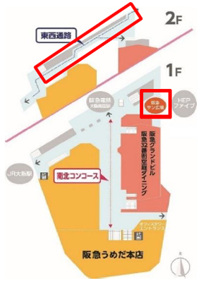 大阪梅田ツインタワーズ・ノース2階東西通路、阪急サン広場
