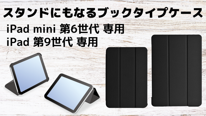 2種類の角度でスタンドになるiPad mini 第6世代専用/iPad 第9世代専用「ブックタイプケース」が新発売。