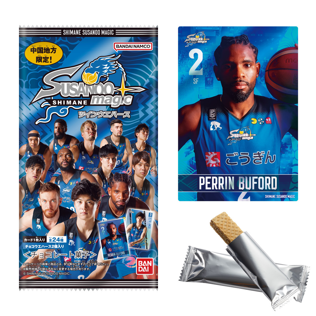 株式会社バンダイ キャンディ事業部と株式会社バンダイナムコ島根スサノオマジックは、B.LEAGUE 2023-24シーズン開幕を記念して、『島根スサノオマジック』のカード付きウエハース(220円 税込)を2023年11月6日(月)より中国地方のお菓子売場にて発売します。