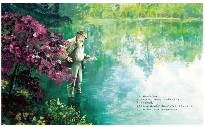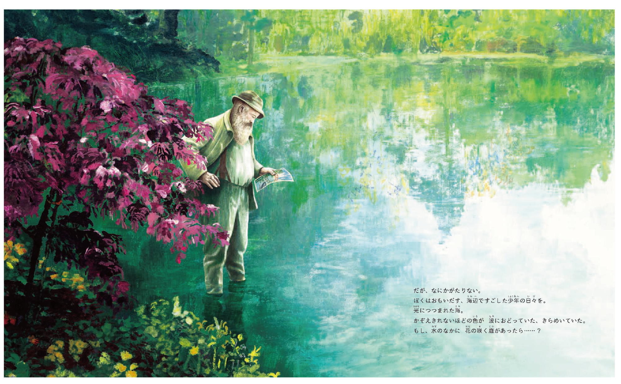 光と水、そして庭の花々を愛し、外で絵を描くことにこだわったたモネの姿が描かれます。
