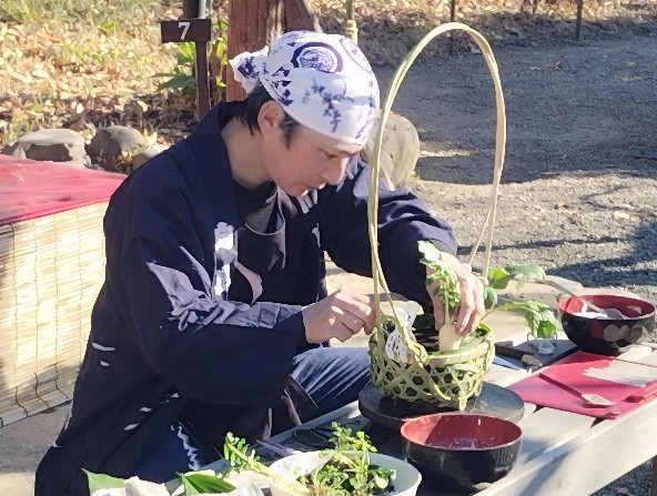 その献上七草籠を制作する様子を、今年も伝統技能見学会として皆様に披露するとともに、