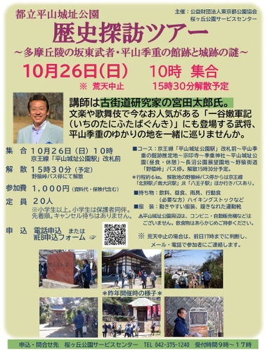 10月26日(日)開催! 【歴史さんぽ】平山城址歴史探訪ツアー ~多摩丘陵の坂東武者・平山季重の館跡と城跡の謎~
