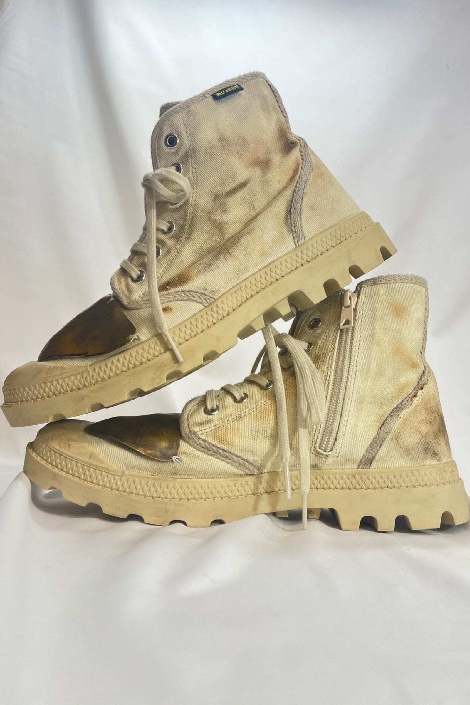PALLADIUM(パラディウム)は、航空機専用のタイヤメーカーとして創業。耐久性に優れた独自製法を開発し、短期間で世界的規模のシェアを獲得しました。第二次世界大戦後の需要減少に伴い、ラバーソールブーツの製造をスタート。砂漠地帯で使用する軍靴というリクエストを受けて、ブランドのアイコン「PAMPA(パンパ)」シリーズが誕生。70年の歴史を経て、オーセンティック感と特徴的なソールに加え、最先端のデザインを合わせ持つフランス発ブーツブランドとして、世界80ヶ国で展開しています。