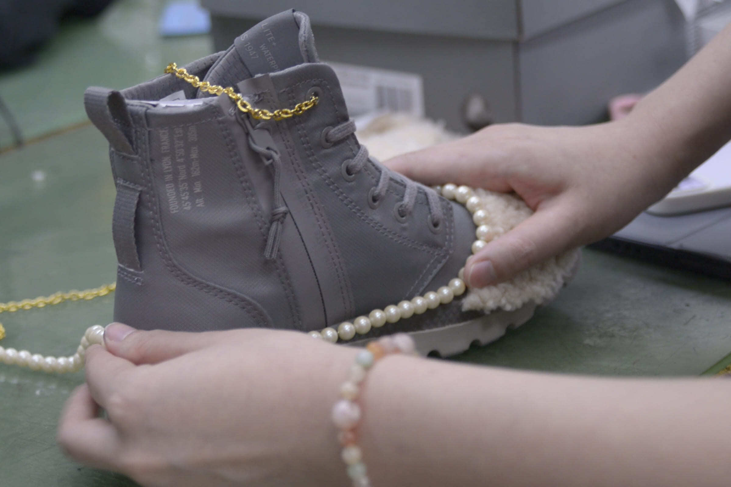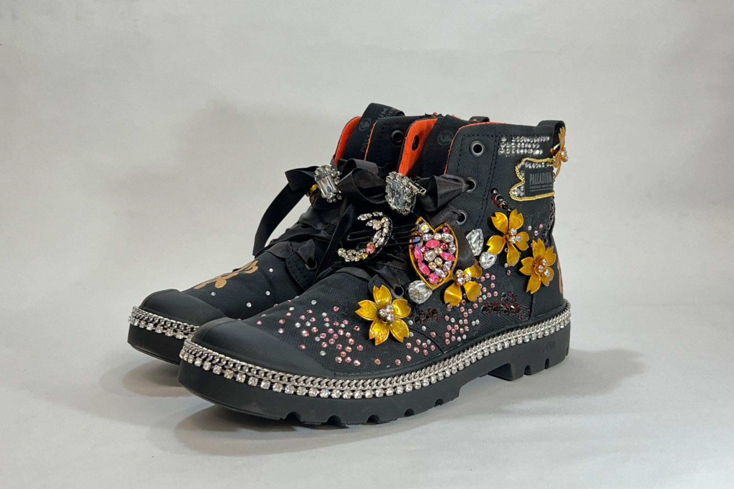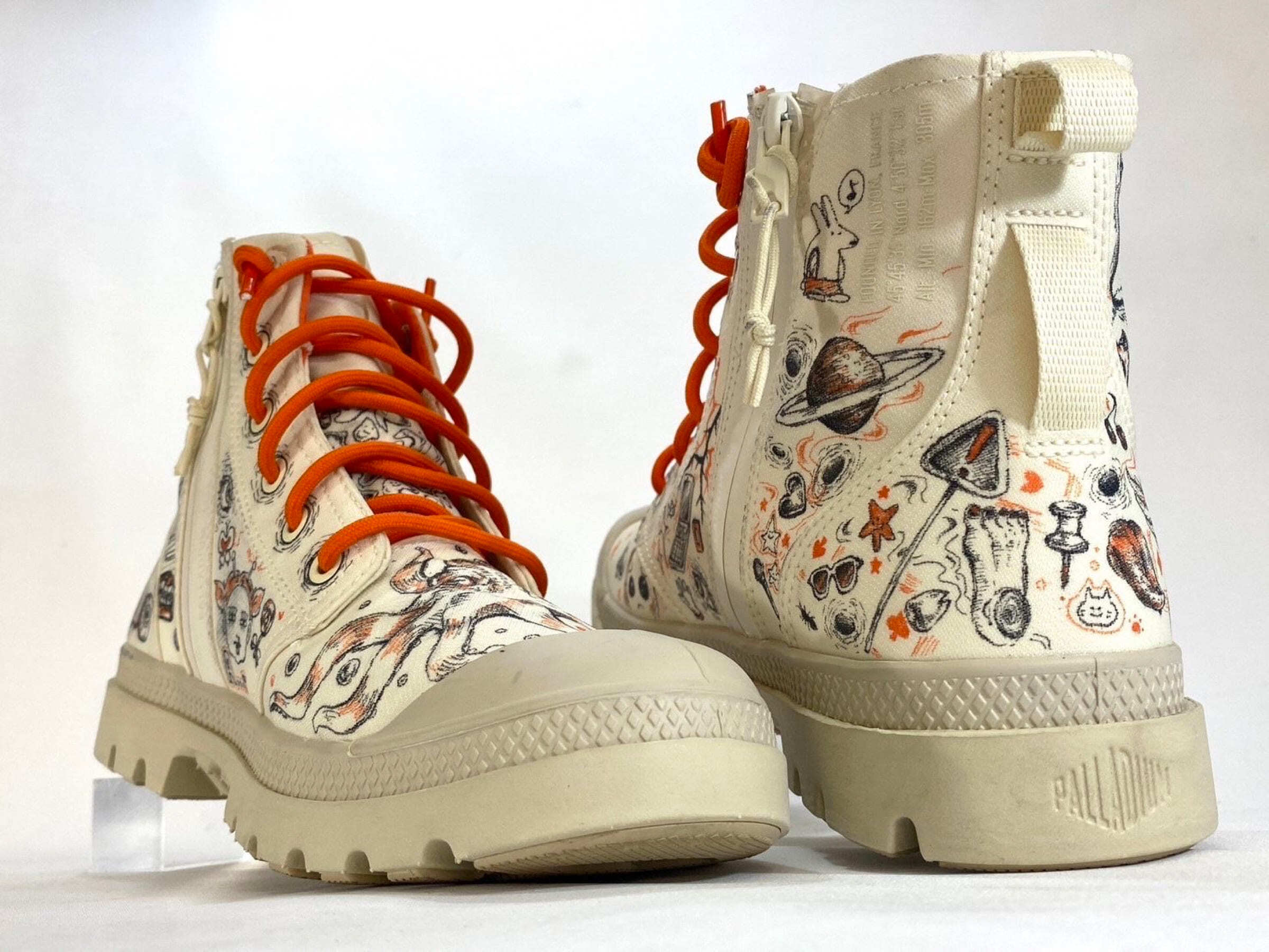 フランスのブーツスニーカーブランドPALLADIUM(パラディウム)は、今年100周年を迎えた文化服装学院とコラボレーションを実施。産学連携の取り組みの第1弾として、ジュエリーデザイン科とファッショングッズ専攻科の学生たちがパラディウムブーツのデコレーションを行いました。