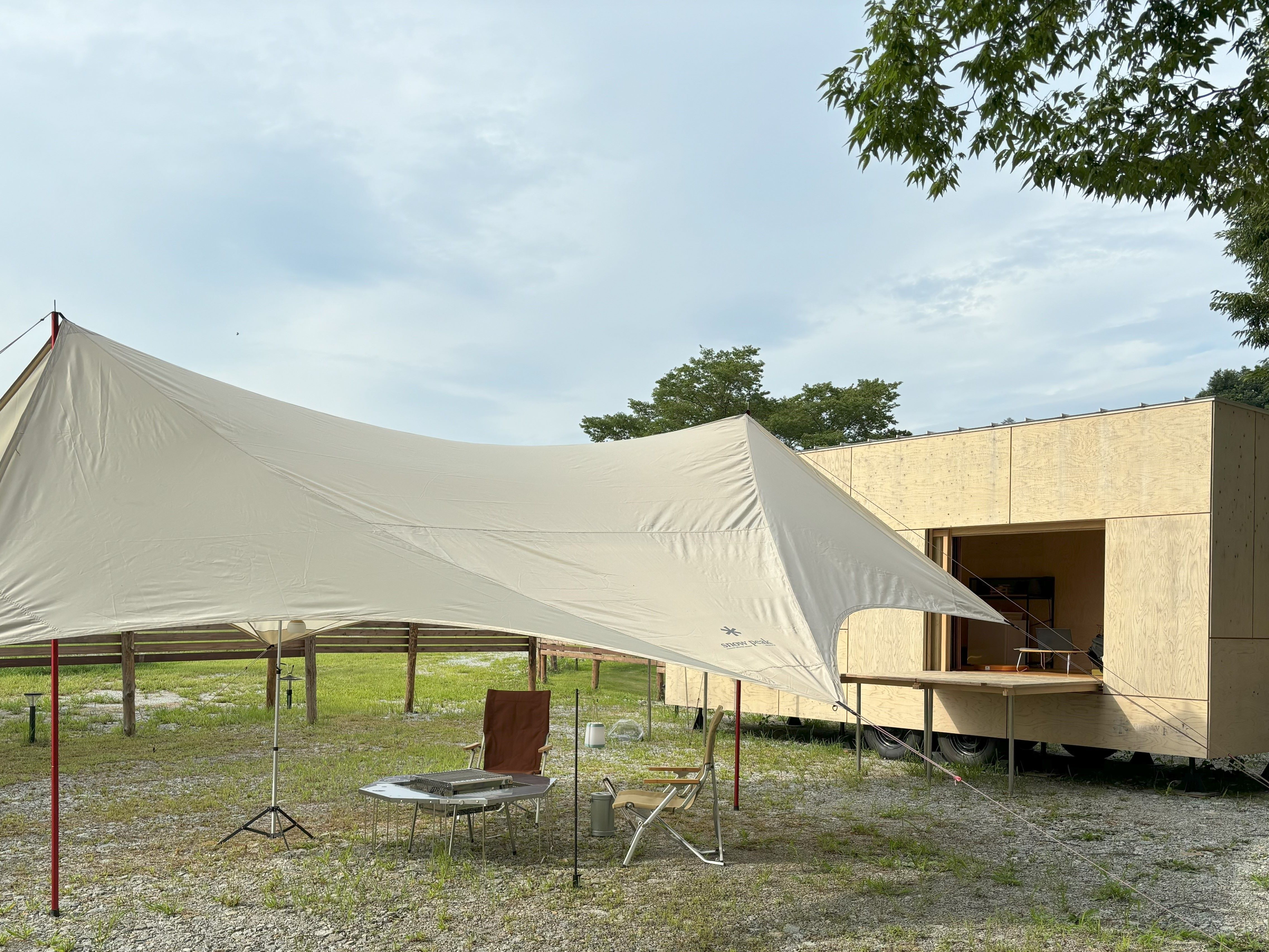 グランピングサイトの客室「住箱」は最大3名様までのご宿泊となりますが、お客様ご自身でテントをお持ちいただければ大人数でのグランピング体験も可能となります。