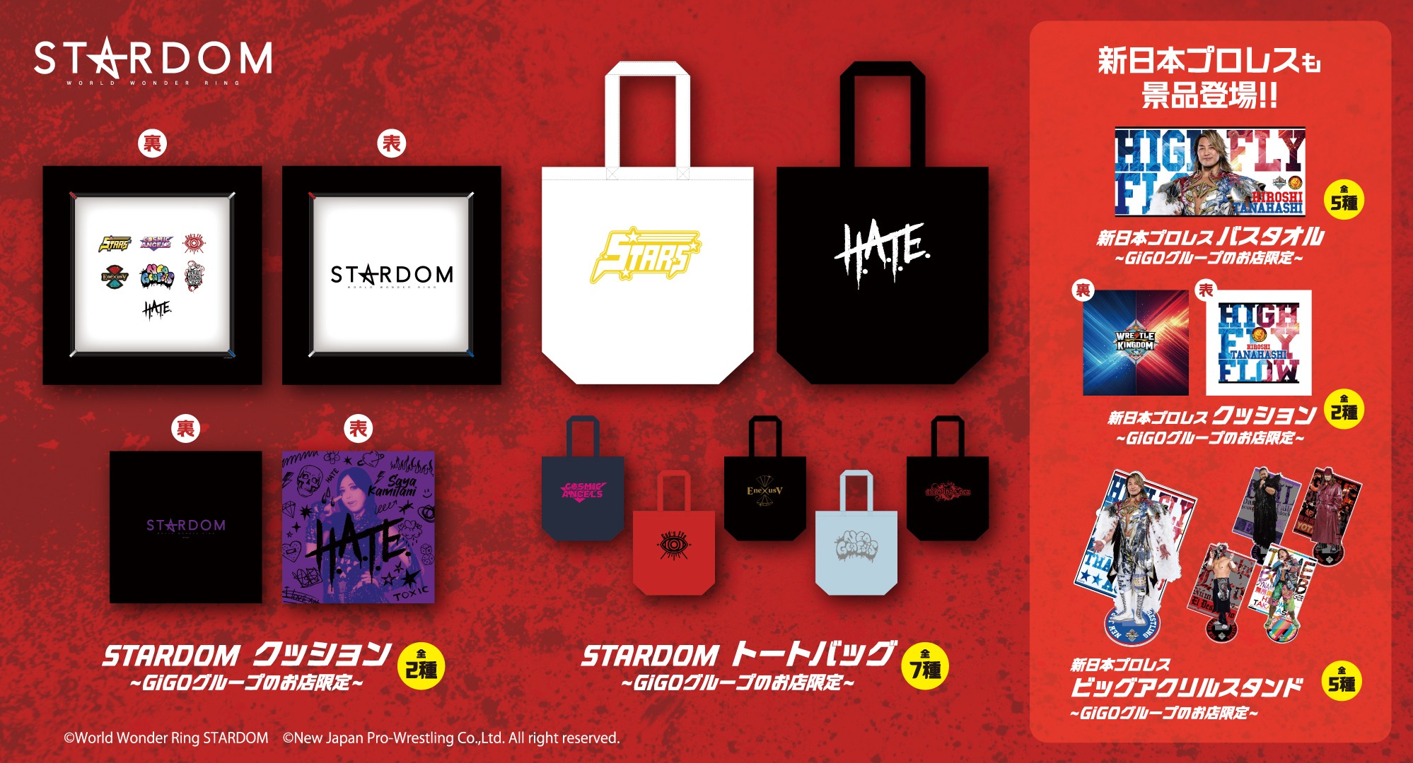 新日本プロレス・STARDOM大会にGiGOが協賛 12月27日(土)からGiGO限定景品が登場!