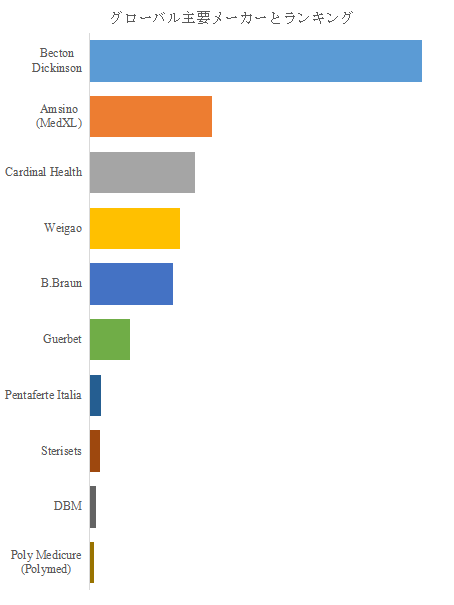 LP Informationのトップ企業研究センターによると、充填済み生理食塩水シリンジの世界的な主要製造業者には、Becton Dickinson、Amsino (MedXL)、Cardinal Healthなどが含まれている。2024年、世界のトップ3企業は売上の観点から約62.0%の市場シェアを持っていた。これらの企業は、製品性能、コスト競争力、信頼性を高めるために技術革新を推進しており、品質の向上や製造プロセスの効率化を図ることに注力している。例えば、新しい製造技術やより精密な滅菌プロセスの導入、安定した供給体制の確立が競争優位性を高める要素となっている。