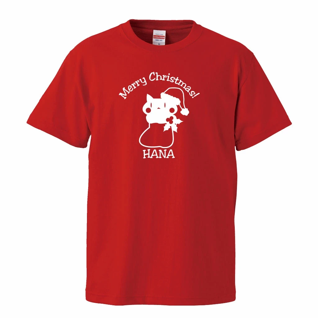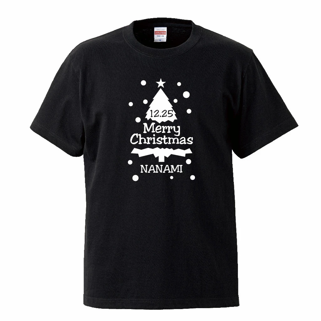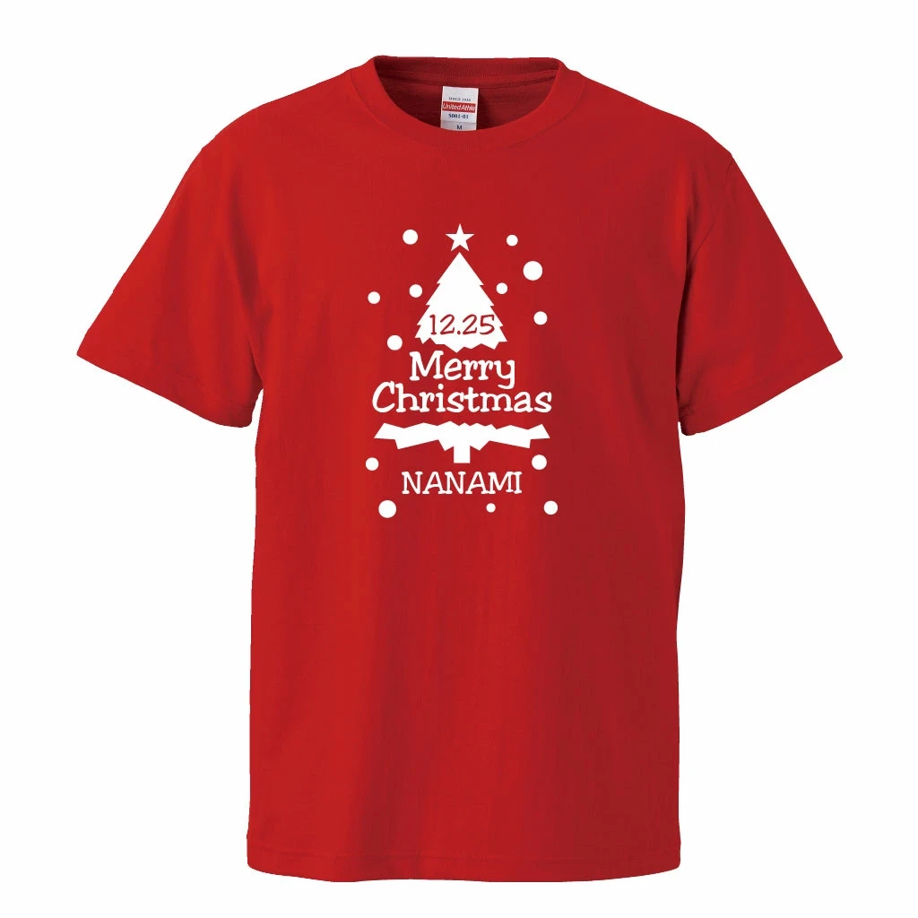 クリスマスパーティーにぴったりな名入れ可能なクリスマスデザインのTシャツです。