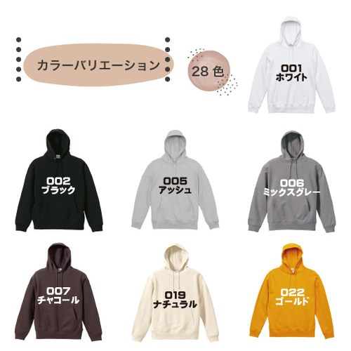 このコレクションは全28色のカラーバリエーションを展開しており、明るいトーンから深みのある色、ビビッドな色まで、多様な選択肢を用意しています。各カラーはあらゆるスタイルにマッチしやすく、個性的なカスタムパーカーを作成する楽しみを提供します。