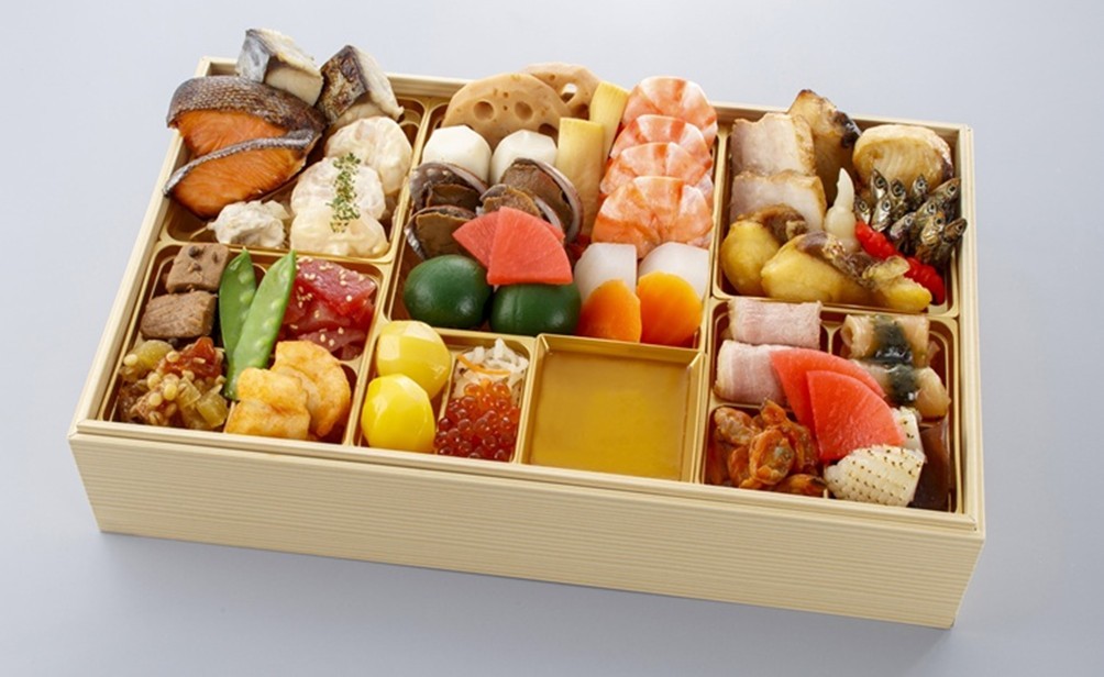 大阪黒門市場の老舗鮮魚店である株式会社新魚栄の監修のもと、世界初の完全養殖クロマグロである「近大マグロ」や「近大マダイ」、「近大鴨」、「近大みかん」、農学部の学生(アグリビジネス実習の受講学生や学生サークル「GAVRi」の所属学生)が育てた各種の農産物、近畿大学が包括連携協定を締結している福島県川俣町の「川俣シャモ」、奈良県曽爾村の「曽爾高原トマト」など、さまざまな近大関連食材を使用し、ハレの日にふさわしい和洋中のおせち料理に仕上げました。