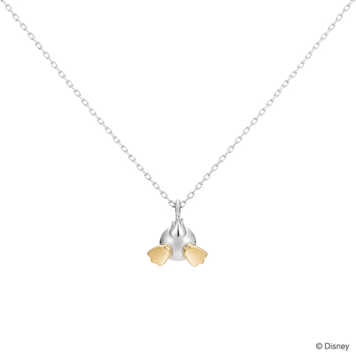 新作の婚約指輪・結婚指輪は、「ドナルドダック」の足や足跡をK18イエローゴールドで表現。ネックレスはふわふわのおしりをプラチナ、足をK18イエローゴールドで表現した2色のデザイン。コミック調の怒った表情がポップなジュエリーケースは、ブルーとアイボリーの2色展開で、アイボリーはWEB限定販売・数量限定商品です。