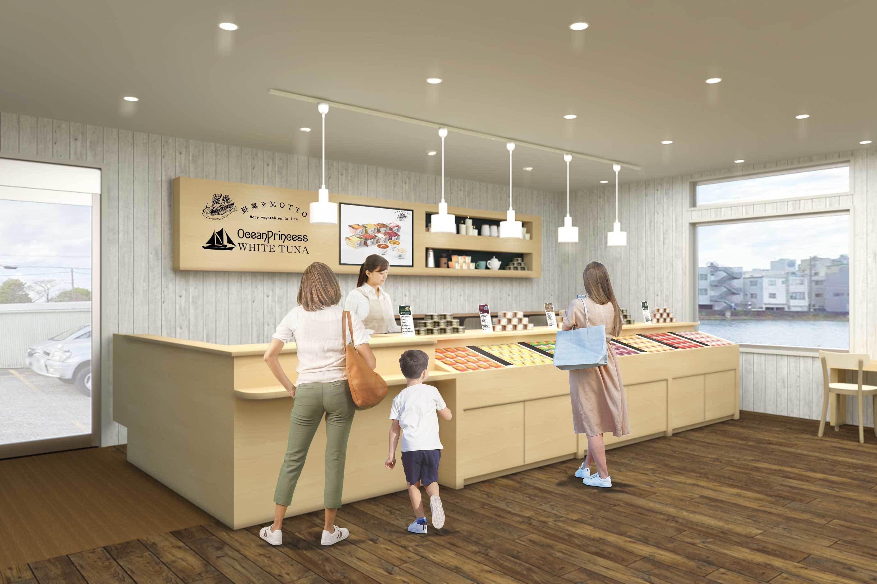 今回のリニューアルでは設計を地元静岡のCSA不動産が手掛け「マルシェの木箱を」をコンセプトに店舗をデザイン。表情豊かな木箱が重ねられたマルシェ(=市場)に、たくさんの人の愉快なおしゃべりが飛びかう……。店内に設けた木箱のカウンターがあたたかいムードをつくりだし、海沿いの家を彷彿とさせるペンキをまとった内装材が、楽しい空気感を生みだします。さらにフレンドリーで、さらにぬくもりのある場所へ。お客様との心地よいやり取りを通じて、モンマルシェの商品理解を深めていただくだけでなく、モンマルシェブランドのファンが増えるような店舗を目指します。