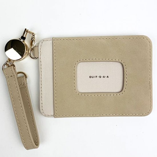 こちらは、リールストラップ付のパスケースです。フラットなシングルタプなので、バッグの中でもかさばりませんよ♪