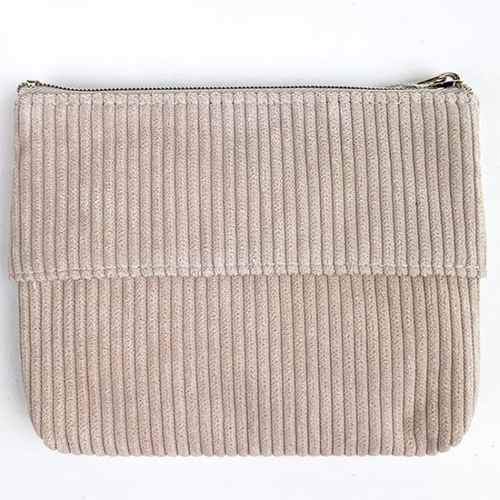 ベージュのコーデュロイ素材がオシャレでシンプル♪この時期にはピッタリな素材ですよね。