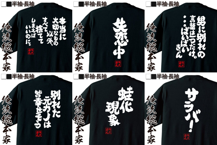 俺流総本家の語録Tシャツは、1万種類以上のデザインを取り揃えています。面白いものから感動的なものまで、多彩なデザインがあり、お客様一人ひとりの個性を引き立てる一枚を見つけることができます。カスタマイズ可能なデザインもあり、特別なイベントやギフトにも最適です。
