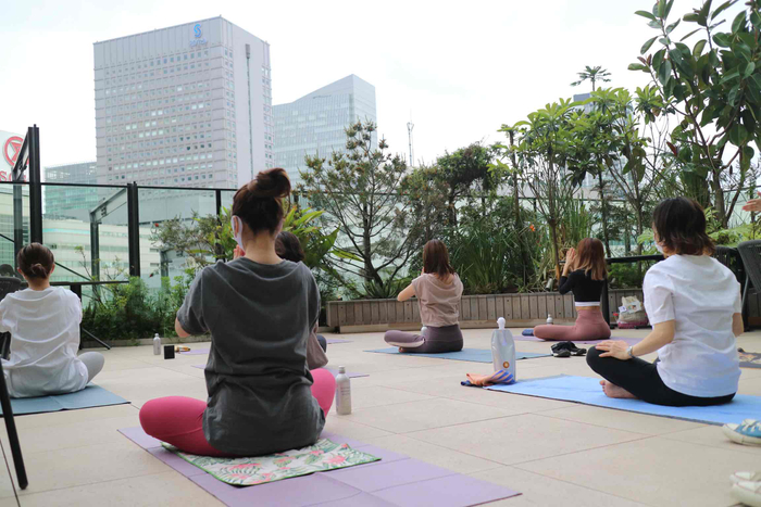 ママヨガ講師Yukiさんによるニュウマンガーデンでの屋外ヨガイベント!