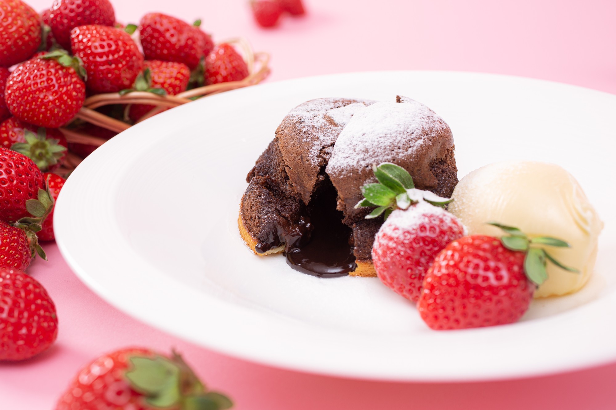 ウェルカムスイーツの「苺のフォンダン バニラアイス添え」は温かいフォンダンとアイスクリーム・イチゴの相性が抜群です。ティースタンドには、イチゴの魅力が詰まったスイーツが華やかに並びます。特に、濃厚な抹茶と苺のテクスチャーが楽しめる「苺と抹茶のテリーヌ」、クロワッサンにたっぷりのイチゴを挟んだ「苺クロワッサンサンド」は必見です。