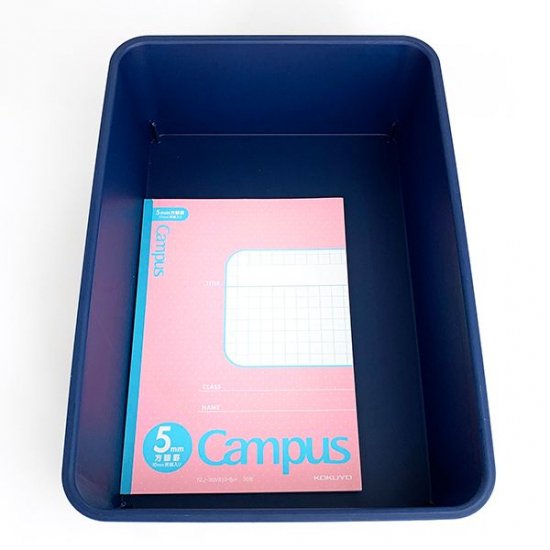 ネイビーやホワイトなどのベーシックなカラー展開で、デザインもシンプルです。お部屋の整理やオフィス用品の収納などに大活躍してくれるアイテムたちですよ。