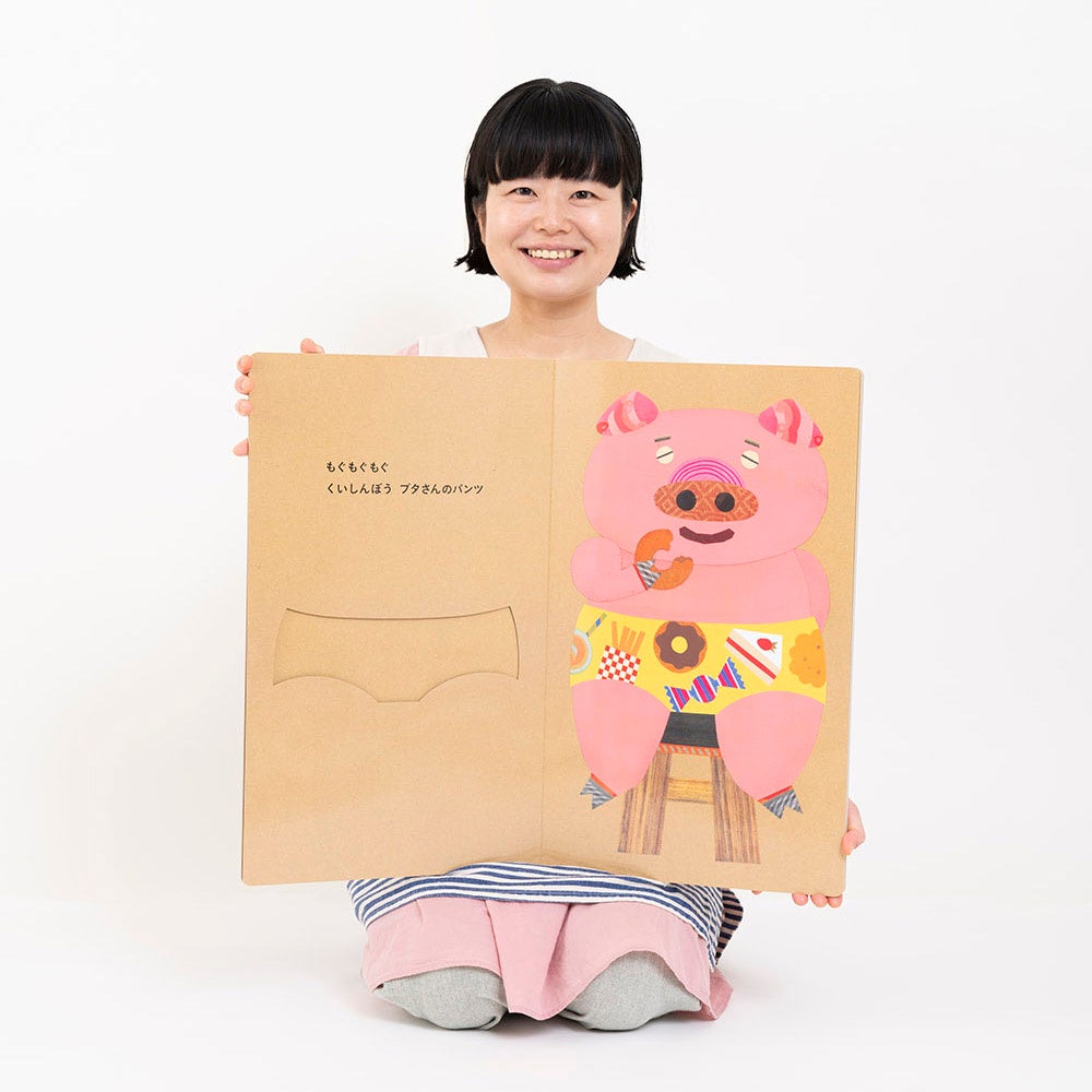 『大型絵本 もう ぬげない』は、通常版の2倍以上のサイズで、集団での読み聞かせやおはなし会でも、絵の迫力や物語の臨場感をしっかりと感じることができます。また、主人公のイラストが大きくあしらわれた専用の収納ケースが付いており、保管や持ち運びにも便利です。