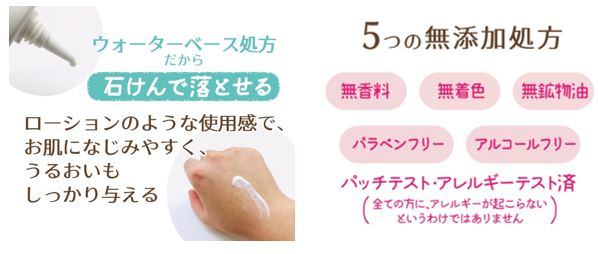 •みずみずしく塗り伸ばしやすいウォーターベース処方。塗った後はさらっとした付け心地で、べたつきません。