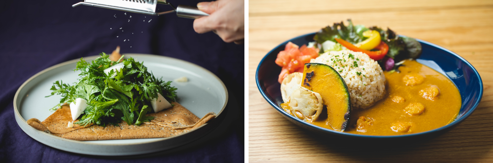 佐久穂町では移住者が増加する一方、人々が実際に交流できる場がまだまだ少ない現状がありました。カフェ「potta」では看板メニューであるガレットに佐久穂町産のそば粉や、交流のある生産者が育てた野菜やフルーツを使用するなど、地域との関わりと四季を大切に、メニューを提供しています。また、店内にキッズスペースを設け、子育て世代の方にも集いやすい空間作りをおこなうなど、佐久穂町で生まれ育った方と移住者の方が混ざり合い、共に町を創造していく一つの拠点となることを目標としています。