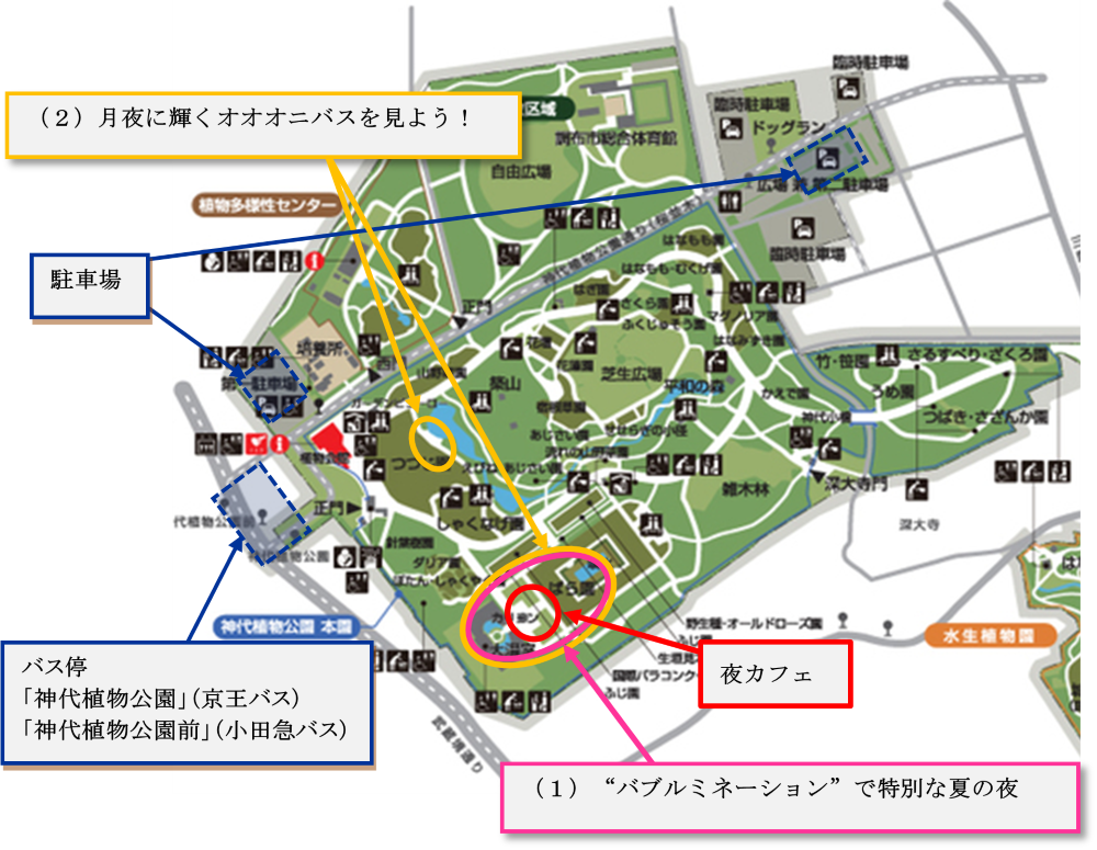 神代植物公園では、普段見ることのできない夜の植物園をお楽しみいただけるよう、7月と9月に「大温室夜間公開」を実施いたします。