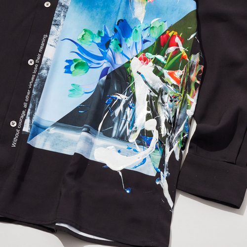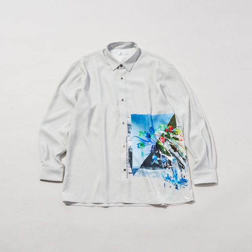 ◆「はくいきしろい×tk.TAKEO KIKUCHI」ペイントモノグラムシャツ