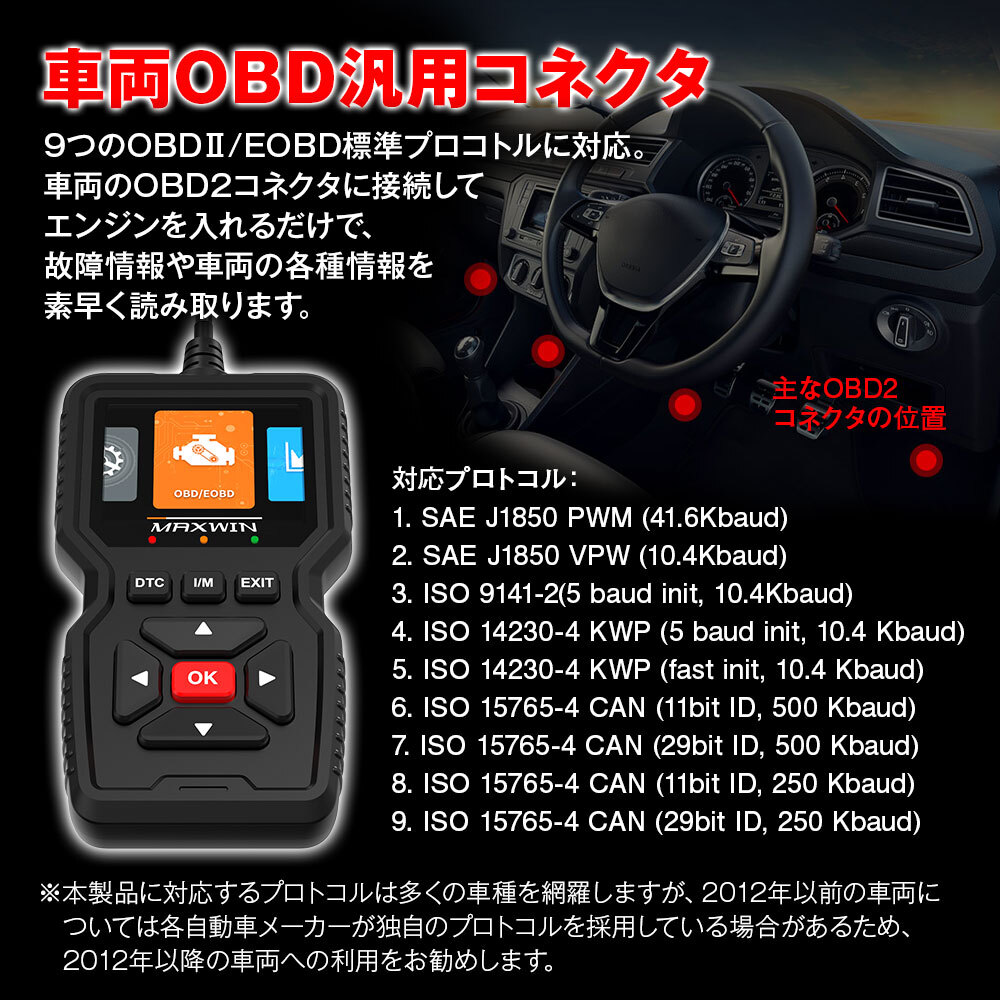 ◆9つのOBD2/EOBD標準プロトコルをサポート