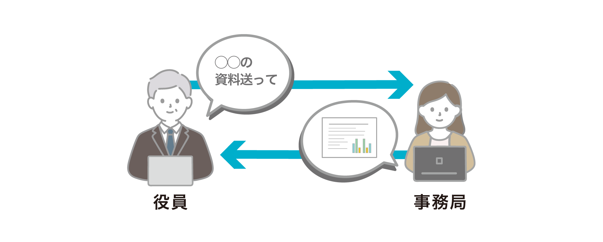 メッセージ機能を利用することにより、総会中も役員から事務局に指示を送ったり、事務局から役員にメッセージを送って進行を支援したり、意思の疎通も簡単に行うことができます。