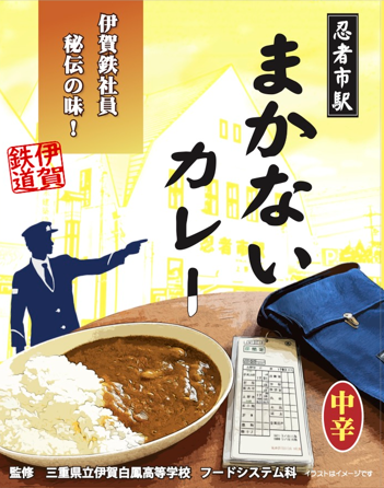 伊賀鉄道では忍者市(上野市)駅で、数十年前から宿泊勤務の社員自ら、時折夕食時に大きな鍋でカレーを作っています。じっくりと炒めた玉ねぎの濃厚な旨みと、辛さの中に甘みのあるスパイシーな大人の味わいが特徴の味をベースにし、レトルトタイプで販売します。