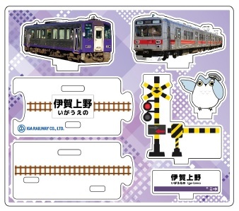 駅名標をデザインしたアクリルスタンドで、伊賀神戸駅ver.と伊賀上野駅ver.の2種類を発売します。伊賀神戸駅ver.は近鉄で運行中の特急車両2種類の写真が、また伊賀上野駅ver.はJR西日本の関西本線で運行中の車両の写真と踏切のイラストがアクリルパーツとして含まれています。なお組み立て後に連結することも可能です。