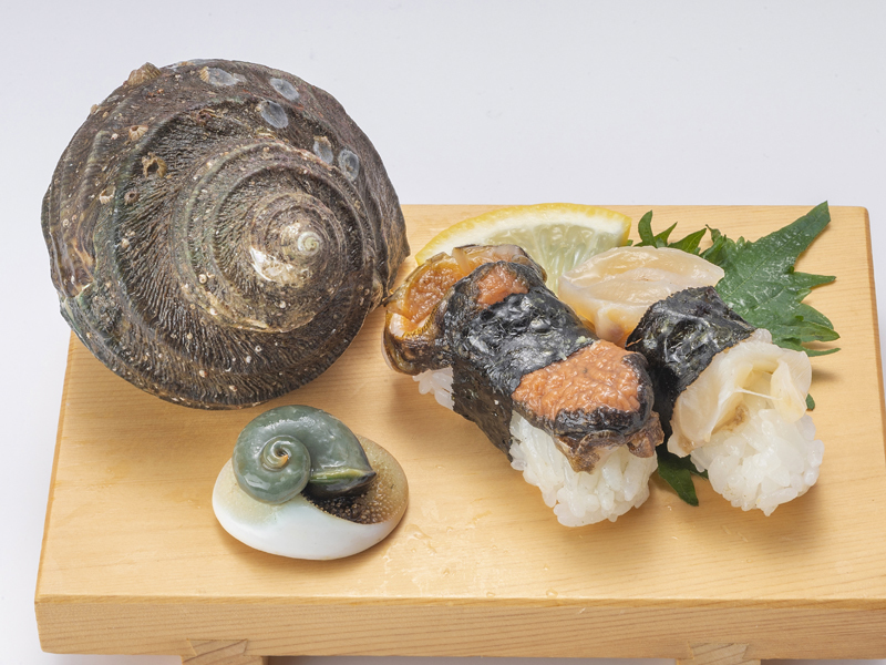 瀬戸内の穏やかな潮流で育ったサザエは角(つの)がなく、磯の香りが豊か。産卵前の春になると香りも増し美味しくなります。歯ごたえのある食感が特徴。