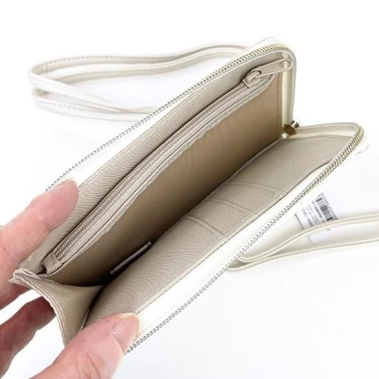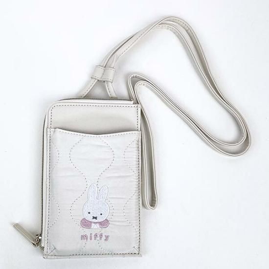 こちらは、刺繍ミッフィーと光沢感ある生地がシンプルなデザインながらおしゃれなスマホショルダーポーチ。