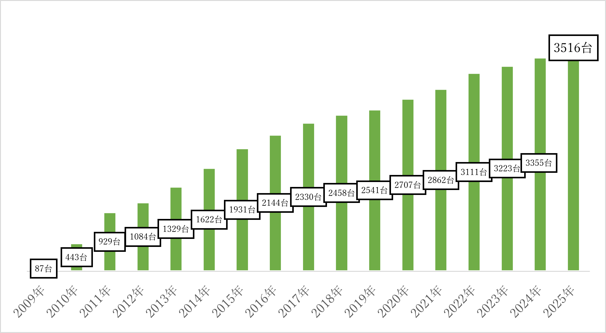 16年で累計(1月~12月起算)は3500台を超えました。