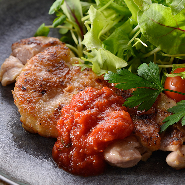 トマトと相性抜群のかつお節と昆布を新たに加えることで、ソース全体の旨みを強化しました。それぞれの素材が持つ旨みの相乗効果で、しっかりとしたコクが味わえます。