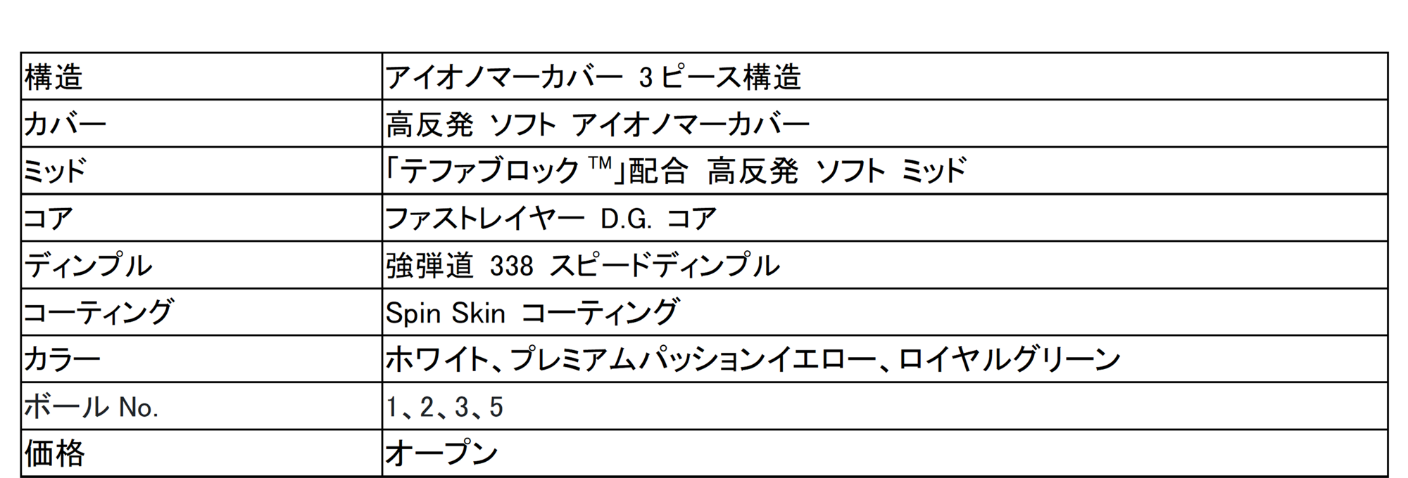 ソフト化したアイオノマーカバーとSpin Skin(スピンスキン)コーティングにより、ショートゲームでのスピンコントロール性能、グリーン周りでのアプローチ性能を向上させています。