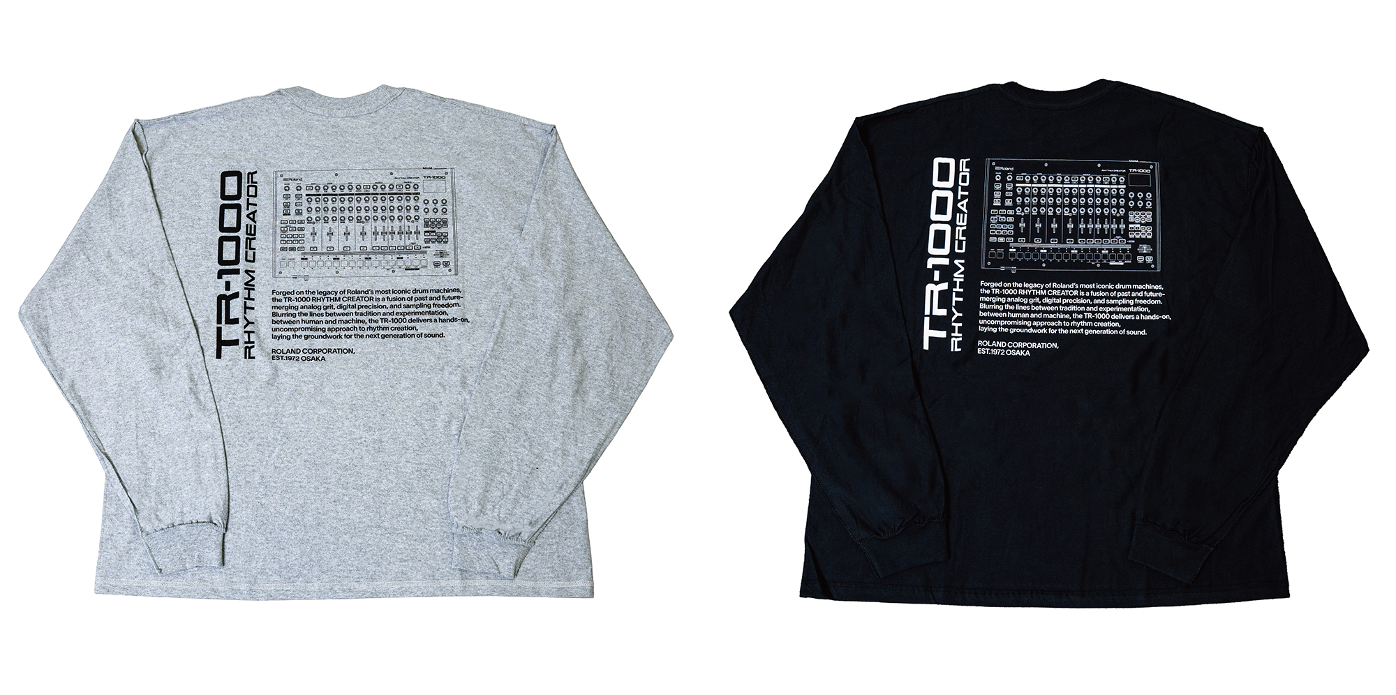 このたび、今なお数多くのアーティストに愛されている「TR-808」、「TR-909」のアナログ・サウンドを継承し、さらに最新のデジタル・サウンドとサンプリング技術を融合したローランドのリズムマシンのフラッグシップ・モデル、リズム・クリエイター『TR-1000』が登場。その発表を記念して、ミュージック&カルチャーとファッションの融合をコンセプトにプロダクトを展開しているISNESS MUSICとのコラボレーションで、『TR-1000』および歴代のリズムマシン「TR-808」「TR-909」をモチーフとしたTシャツ、ロングTシャツ、スウェットシャツ、キャップを展開し、2025年10月1日(水)に、ローランド直営店Roland Store Tokyoにて、数量限定で発売します。