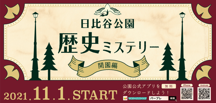 日比谷公園開園当時の歴史を謎解き方式で巡るセルフガイドツアーツール「日比谷公園 歴史ミステリー(開園編)」が、2021年11月1日に都立公園スマートフォンアプリ「TOKYO PARKS PLAY」の新コンテンツとして登場!