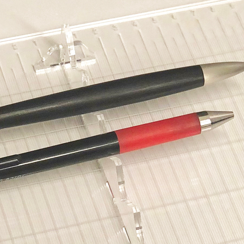 3本、5本、6本の3タイプ、文具王ロゴ入り、なしから選べるお気に入りのボールペンを飾ることができる什器です。 昨年、当社のツクルワークで開催したOKB48総選挙握手会(試し書きイベント)での展示に使用した什器を販売する事が可能になりました。