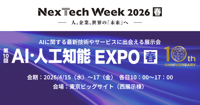国内最大級のAIポータルメディア「AIsmiley」を運営するアイスマイリー(東京都渋谷区、代表取締役:板羽晃司)は、2026年4月15日(水)~4月17日(金)に東京ビッグサイトにて開催の「NexTech Week 2026【春】/ AI・人工知能EXPO 」にブースを出展します。