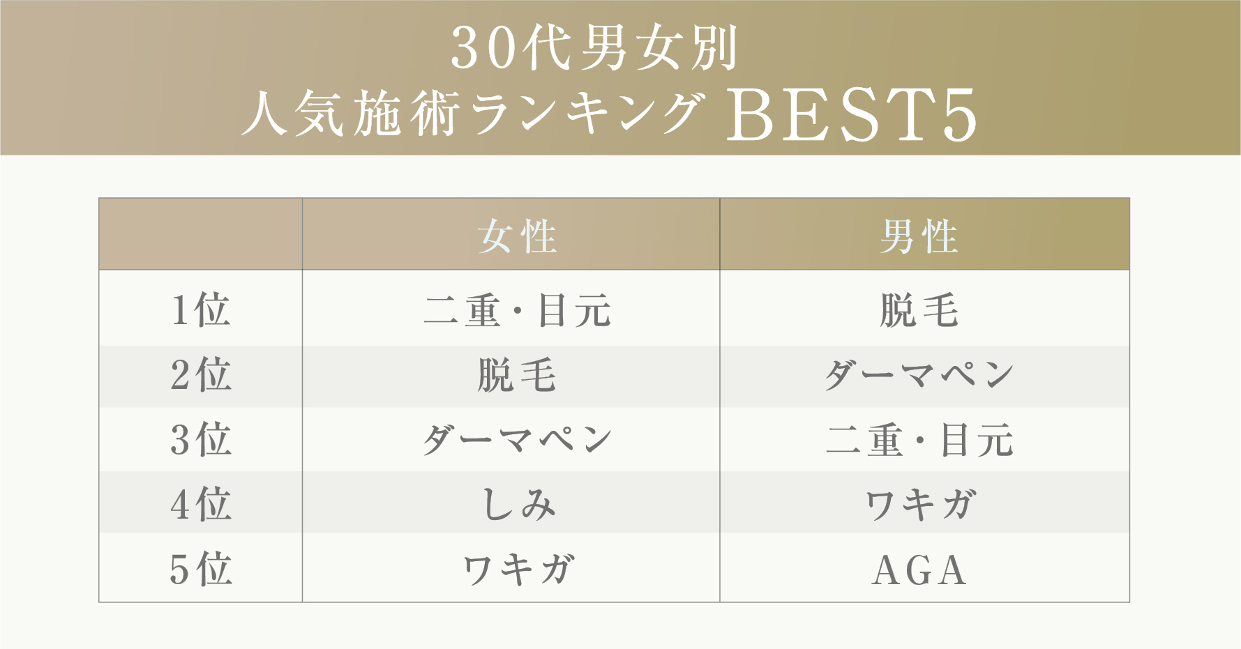 やはり「ダーマペン」も「二重・目元」も男女ともに人気の施術であることが分かります。