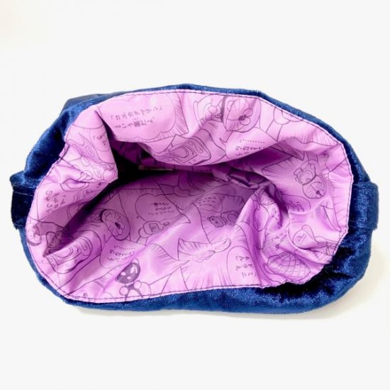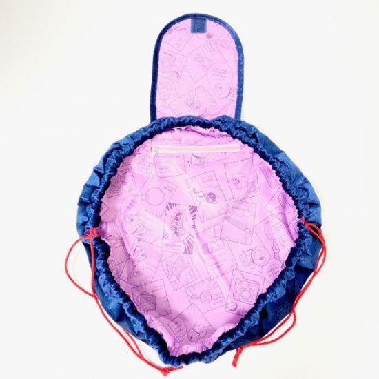 ヒモを引っ張ると、全体の内側の生地もコミック柄になっています。ヒモを引っ張るだけの簡単収納ポーチですね。