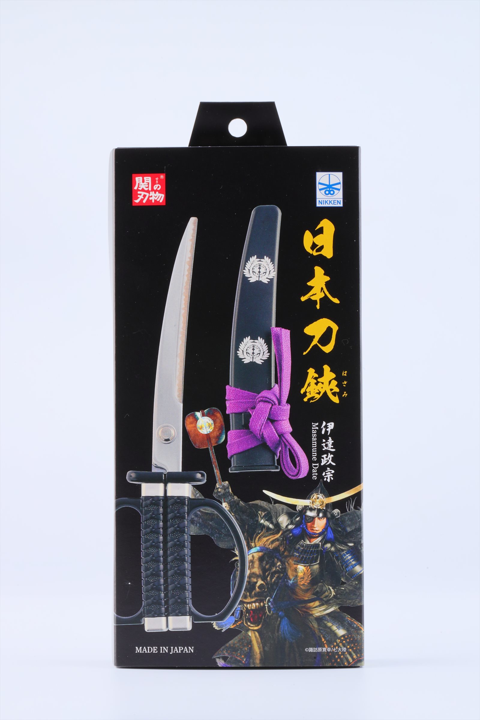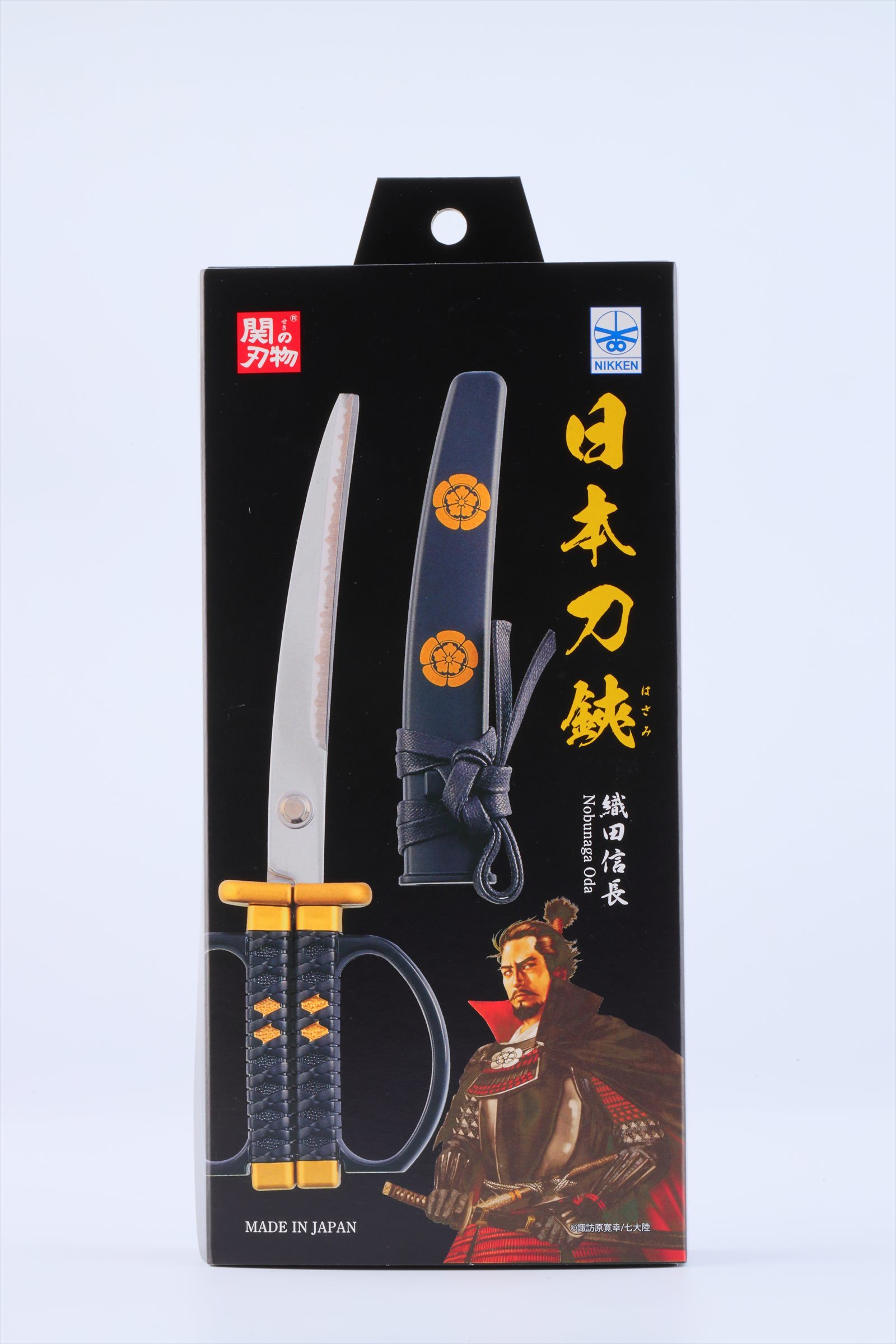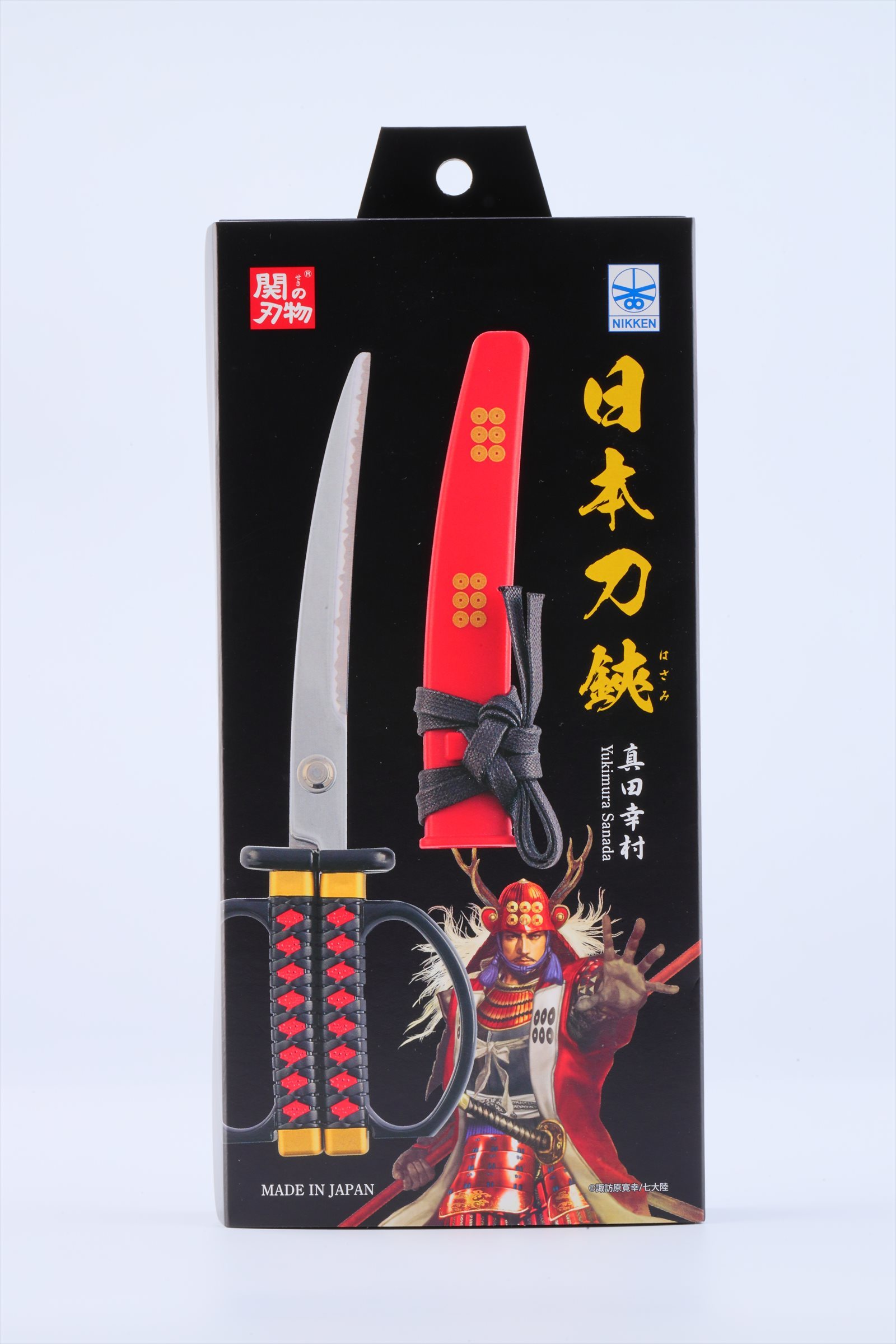 本商品は、2016年におみやげグランプリのグランプリ及び観光庁長官賞を受賞した日本刀はさみに、人気武将4人(織田信長/徳川家康/真田幸村/伊達政宗)の家紋や掛け台をつけた特有のモデルとなります。
