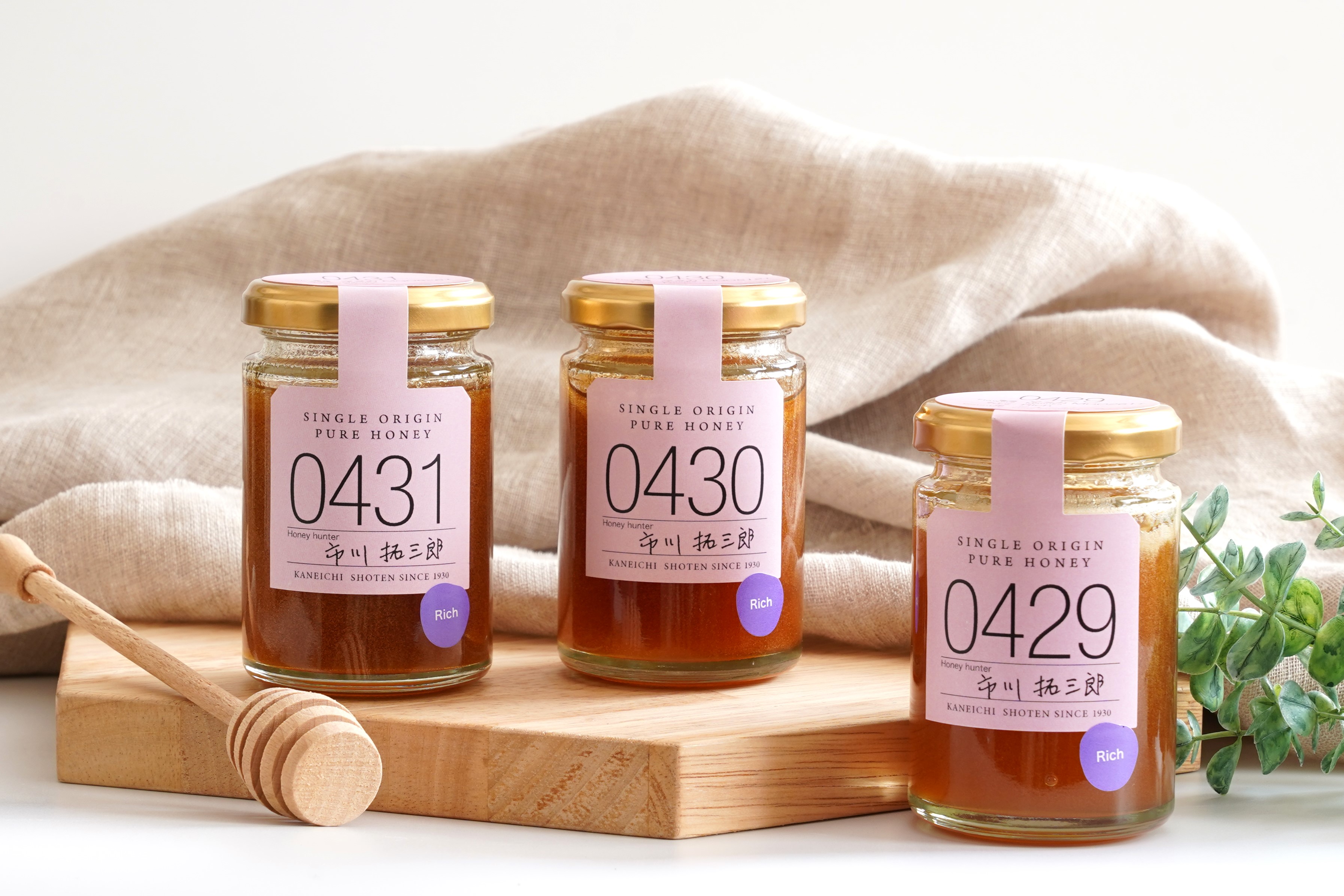 蜂蜜は「蜜源、場所、時期」などによって味わいがそれぞれ異なります。その異なる"オリジン"を持つ蜂蜜を、個性そのままに瓶詰したのが「シングルオリジンハニー」。ハニーハンター市川拓三郎が世界中からいろいろな蜂蜜を集め、世界20か国、日本20都道府県以上から100種類を超える蜂蜜を取り揃えています。