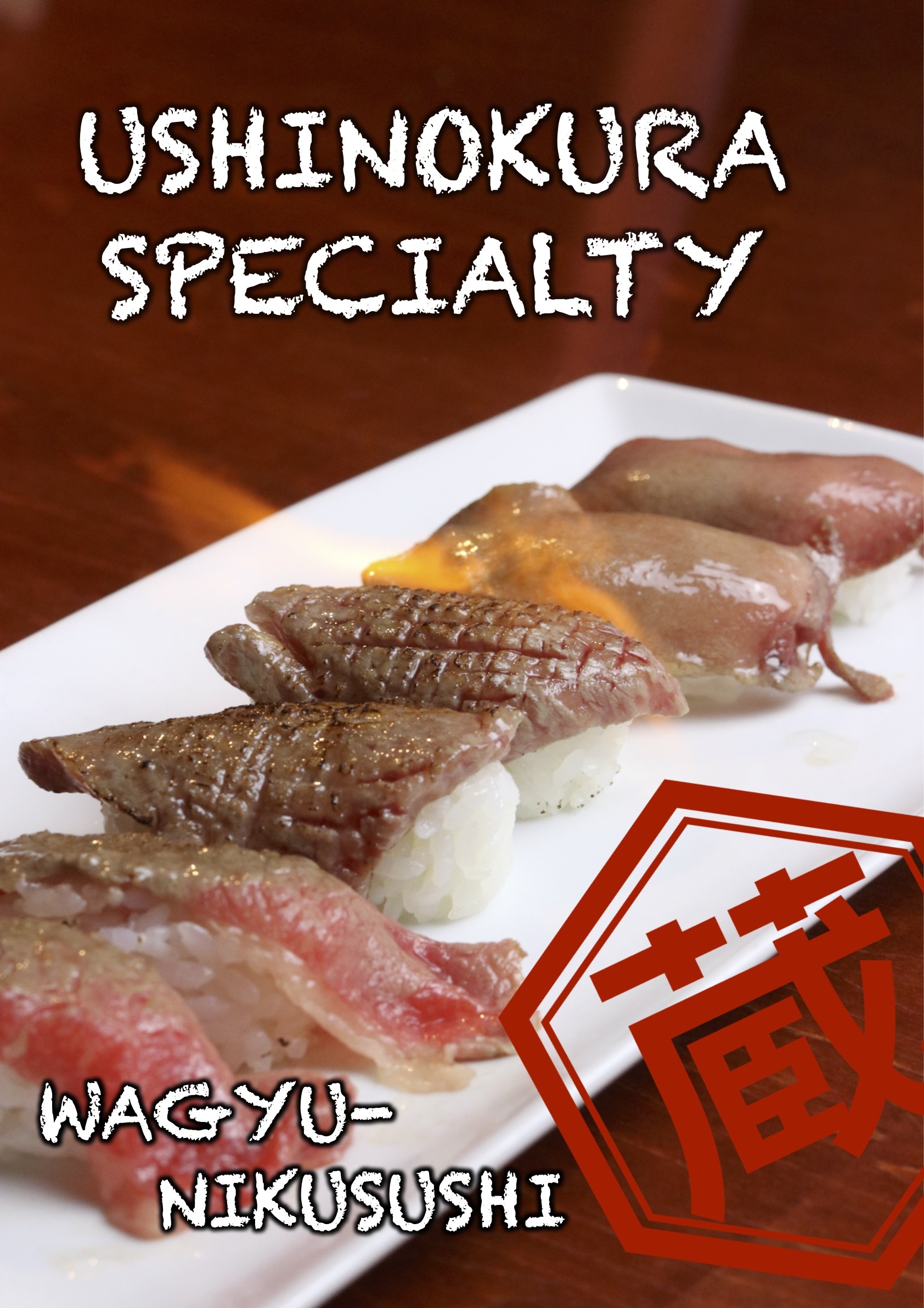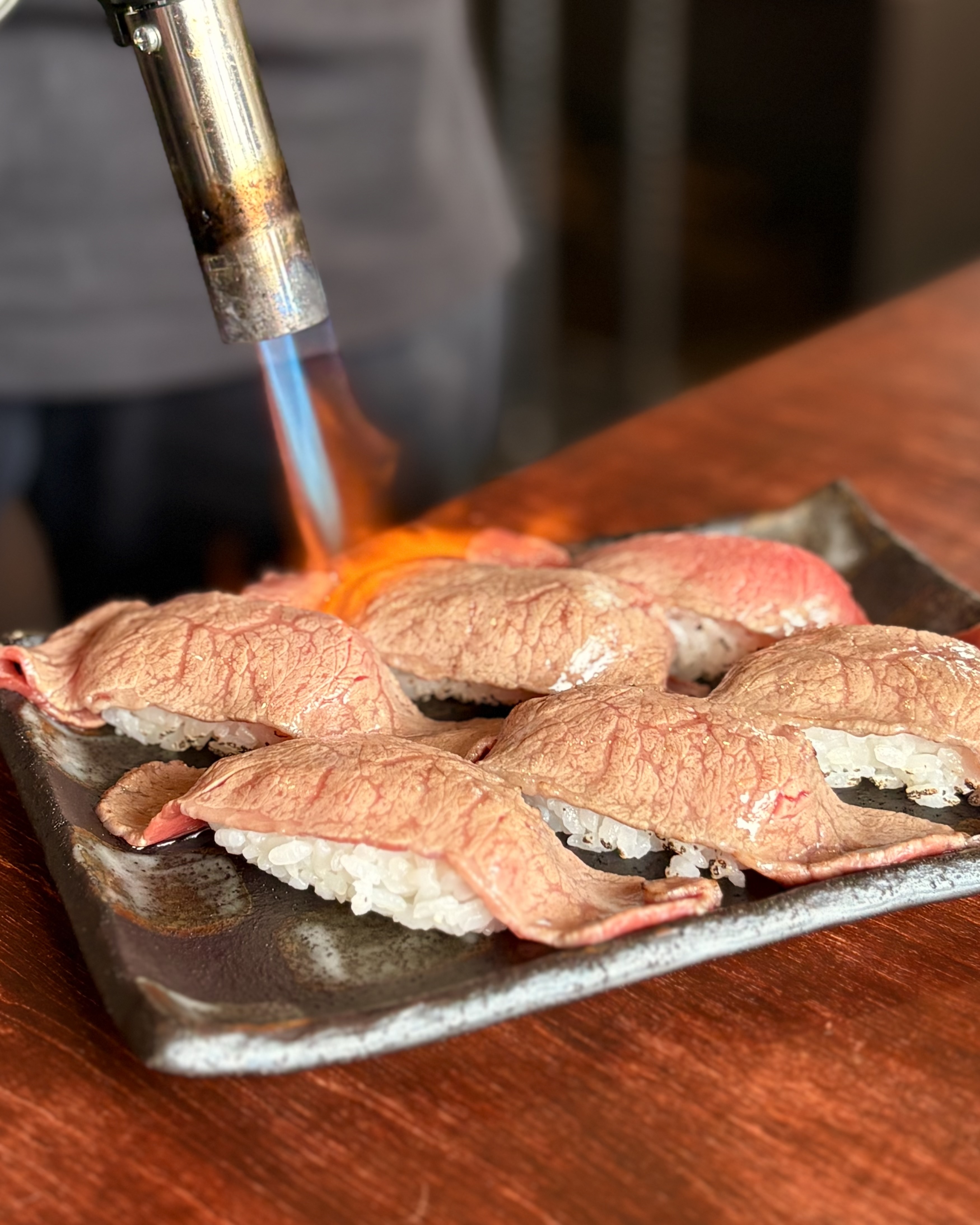 火の蔵に来たらこれ!厳選したお肉を職人がお寿司に仕上げます!やわらかい和牛が口の中でとろけます!お子様にも大人気の和牛寿司をぜひご賞味ください!