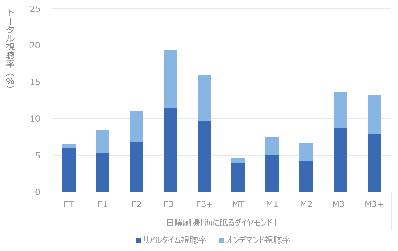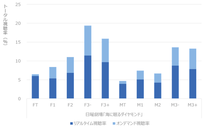 個人視聴率1位の「海に眠るダイヤモンド」は幅広い性年代のリアルタイム視聴、オンデマンド視聴共に人気でした。