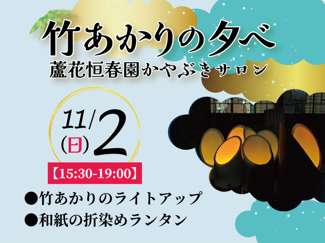 【11/2開催!】蘆花恒春園かやぶきサロン「竹あかりの夕べ」やさしい光に包まれる、一夜限りの特別公開