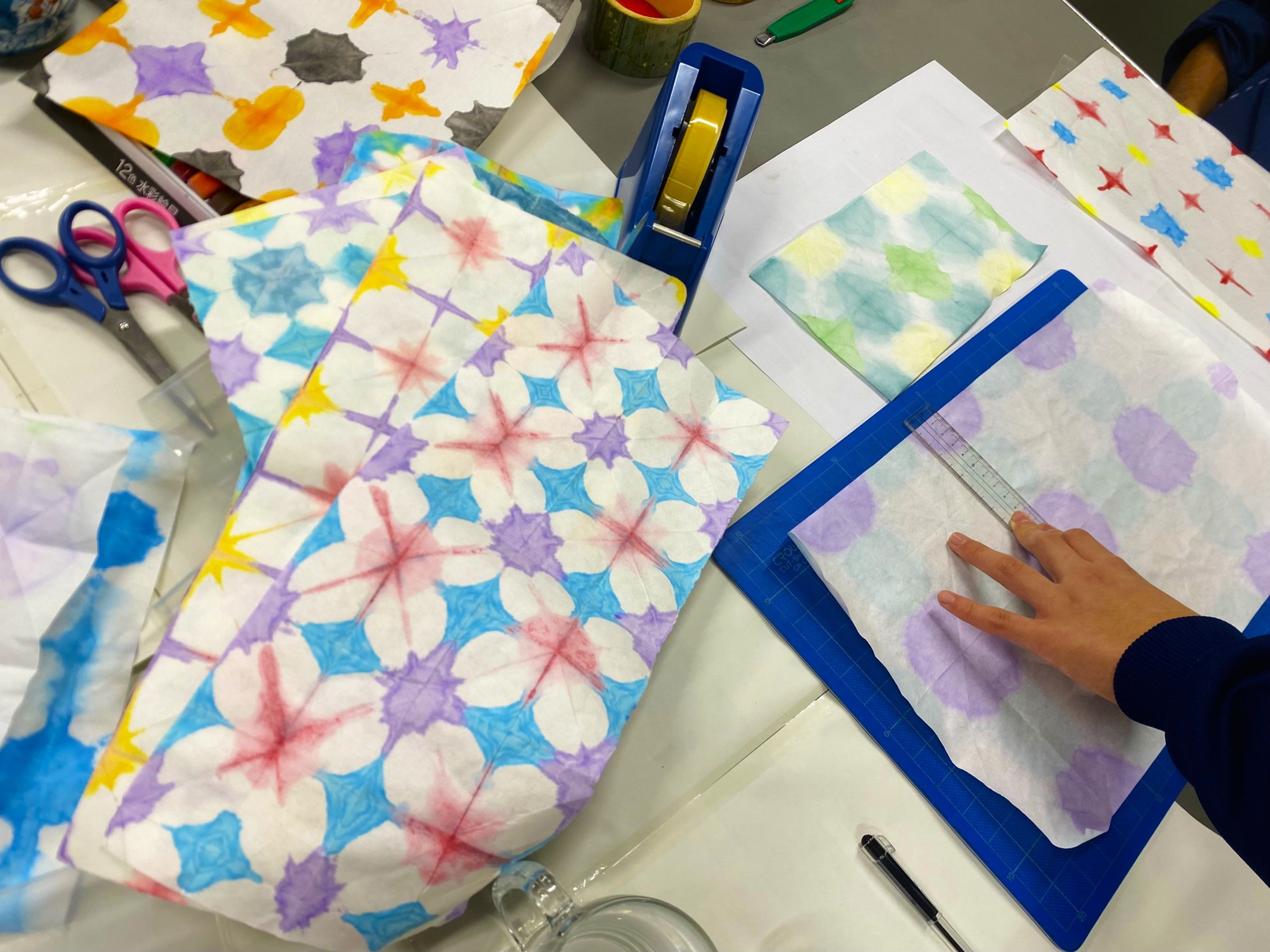 ⑵和紙の折染めランタンづくり