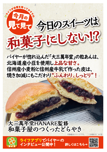 “おいしい” “ワクワク” “ハッピー” をお届けするライフコーポレーションは、大三萬年堂HANARE監修スイーツ第5弾として「和菓子屋のつくったどらやき」を、10月1日(火)に新発売いたしました。
